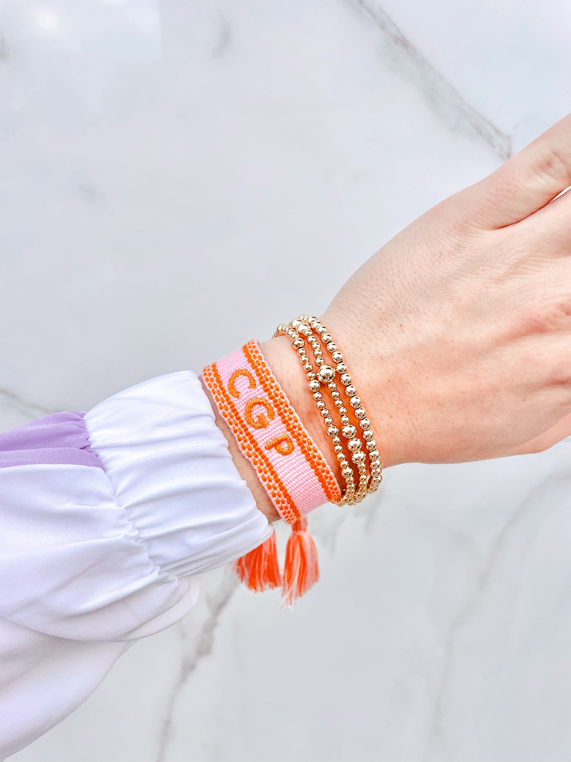 Light Pink & Orange Tassel Bracelet